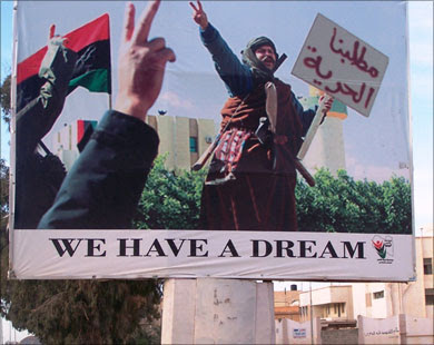 در تمام شهرهای لیبی تصویر یک نفر با لباسی خاص و نوشتهای (مطلبنا الحریة) در دست، بسیار خودنمایی میکرد.